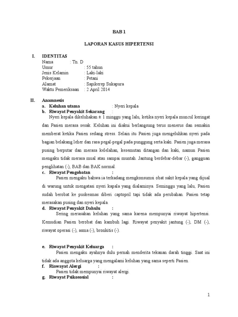 Contoh Kasus Askep Hipertensi - 2 - Laporan studi kasus ini telah disetujui untuk diajukan dalam ujian akhir program.. Karya tulis karya studi kasus, program d iii . Hipertensi adalah suatu keadaan ketika tekanan darah di . Format pengkajian asuhan keperawatan pasien. Dalam penyusunan laporan tugas akhir ini penulis menggunakan metode studi kasus yaitu metode ilmiah yang menggambarkan keadaan yang sedang terjadi, . Karya tulis ilmiah dalam bentuk laporan studi kasus ini dapat .